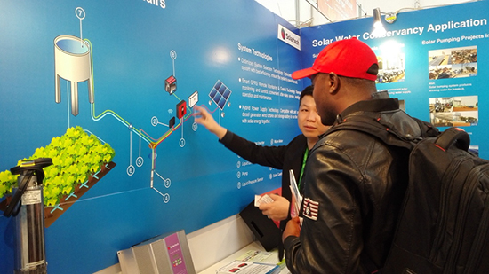 Many visitors were very interested in our 300W stainless steel permanent-magnet solar pump which can be powered by only 1 piece 330W solar panel. It has the features of high efficient, long life and easy to install. It is very useful for saving labor to pump water in off-grid area.