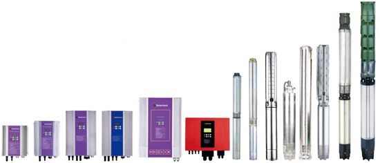 Solartech solar pumping inverter regulates and controls the whole system operation, controls the solar array to convert solar radiation into electricity, realizes MPPT (Maximum Power Point Tracking), adjusts the synchronous conversion of output frequency and solar radiation, drives water pump to draw water for irrigation, converts the power absorb from solar array to supply the solar pump system.