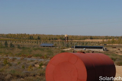 In October, 2011, with the solar pumping system for irrigation, water supply for desert trees is no long a problem.